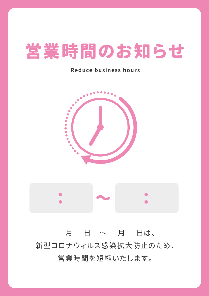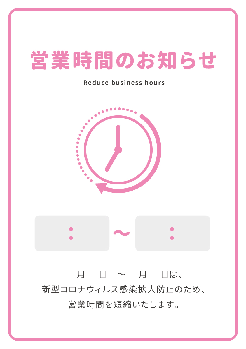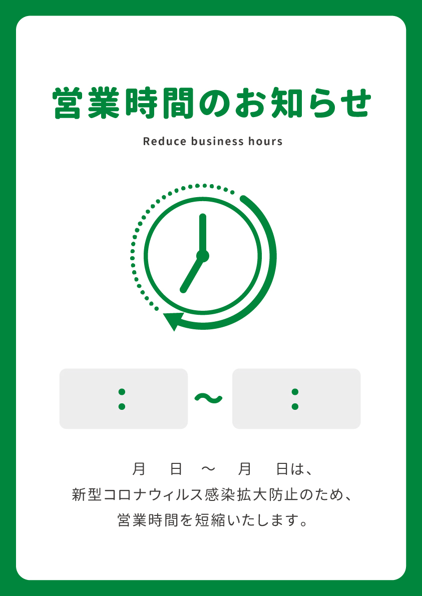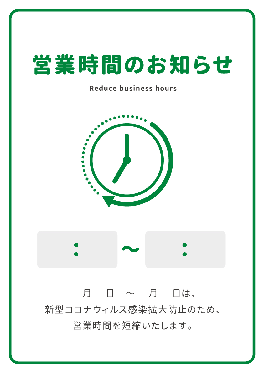 営業時間のお知らせ、休業のお知らせは、利用する方ご自身で時間・日付を記入ができるようにしました。