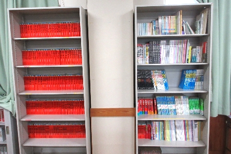 国語科・英語科・家庭科など、各教科との連携を深め、生徒の読書活動を活性化する取り組みを行っています。英語の多読活動の充実のため、生徒に親しみやすい内容の多読用英語書籍のコーナーを拡充しました。