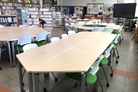 対話や協働を通じて主体的に学ぶためのスペースです。組み合わせ自由な机と椅子を備え、図書の閲覧だけでなく、テーブルを自由に移動してグループワークを中心とした授業も行われています。