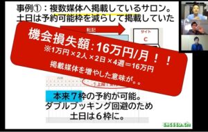 上記のように、月間16万円分の『機会損失』を防げることになるかもしれない!あくまで、電話予約も取れずに、当日飛び込み来店も無く、制限した予約枠が無駄になった場合と、逆にそれが埋まった場合の差を想定した損失です。